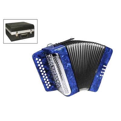 accordion 8 bass, 2 rows, B-C, diatonic, flat panel, case and straps, blue Made in Germany