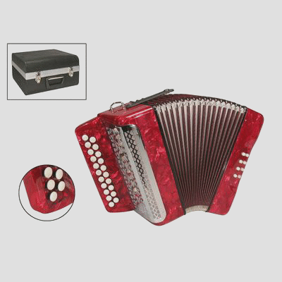 diatonic accordion, 23-6 BC, 4 chords, with case & straps, red·