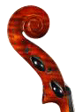 Very nice narrow grained spruce top, craped with carved f-wings. Carved scroll. first quality graduation. First qualtiy spirit varnish by hand. Antique varnish (Benzoe) or old imitation available.