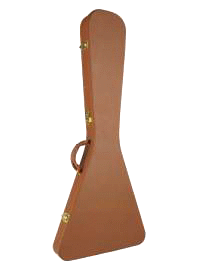 Koffer für Flying-V E-Gitarre Deluxe, brauner Tolex-Bezug, pinke Plüsch-Polsterung