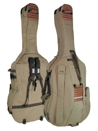 Tasche für Kontrabass 4/4, beige-braun, 23 mm gep, Deluxe-Modell, 2 Gurte, versch. Zubehörtaschen