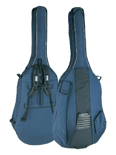 Tasche für Kontrabass 4/4, dunkelblau-grau, 23 mm gepolstert, 2 Gurte, versch. Zubehörfächer