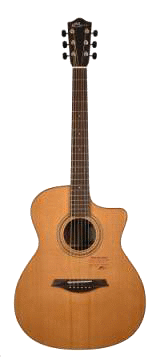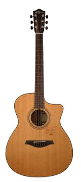 Mayson M1 is a full sized steel string guitar with an Engelmann spruce or cedar top, mahogany back and sides, a high gloss PU finish top and PE finished back. This guitar is a musician's dream, offering a well balanced sound and ease of play. Wooden binding.