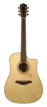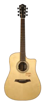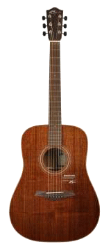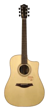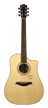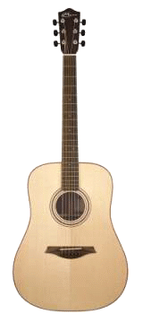 Specs: body style : dreadnought shape top wood : solid Engelmann spruce back and sides wood : mahogany neck wood : mahogany fingerboard wood : Indian rosewood MOP dots bridge wood : Indian rosewood top finish : glossy neck finish : glossy pickguard : transparent machine heads : nickel 372-AS saddle and nut : bone strings : Mayson CBR-12 coated 012-054 truss rod : double action scale length : 645mm body length : 550mm body width : 390mm body depth : 122mm top nut width : 45mm