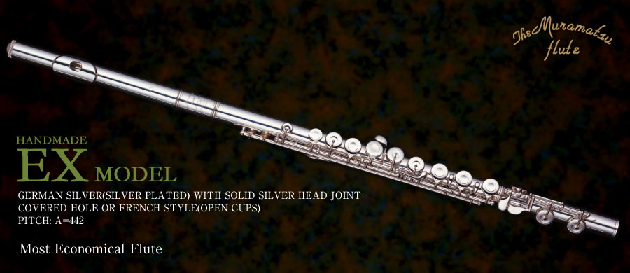 Great Value in a Handcrafted Muramatsu Flute The GX model has the warm and mellow sound of a handmade flute with silver head and body. This is an all sterling silver flute except for the silver plated German silver key mechanism. This instrument will thrill those who have the opportunity to experience it. Yet, the price of this model is less than other professional flutes that do not offer the high quality and impeccable construction standards exemplified in all Muramatsu flutes. SOLID SILVER TUBINGS, EMBOUCHURE, RINGS, RIBS AND POSTS GERMAN SILVER KEY MECHANISM WITH SILVER PLATED COVERED HOLE OR FRENCH STYLE(OPEN CUPS) PITCH: A=442