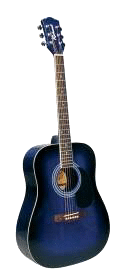 Akustikgitarre Dreadnought, blau sunburst, gekapselte Mechaniken, farbig bedruckter Karton