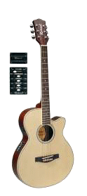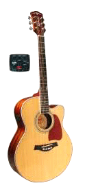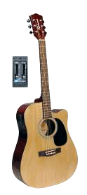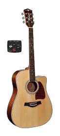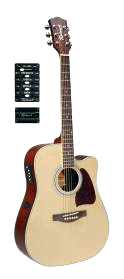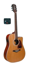 acoustic guitar, dreadnought model, cutaway, solid top, amber, B-Band EQ and tune