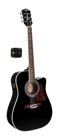 Akustikgitarre Dreadnought, Cutaway, massive Decke, schwarz, B-Band EQ inkl. Tuner