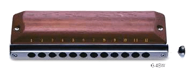 The G-48W is the first ever mass-produced chromatic harmonica with a wooden cover.
